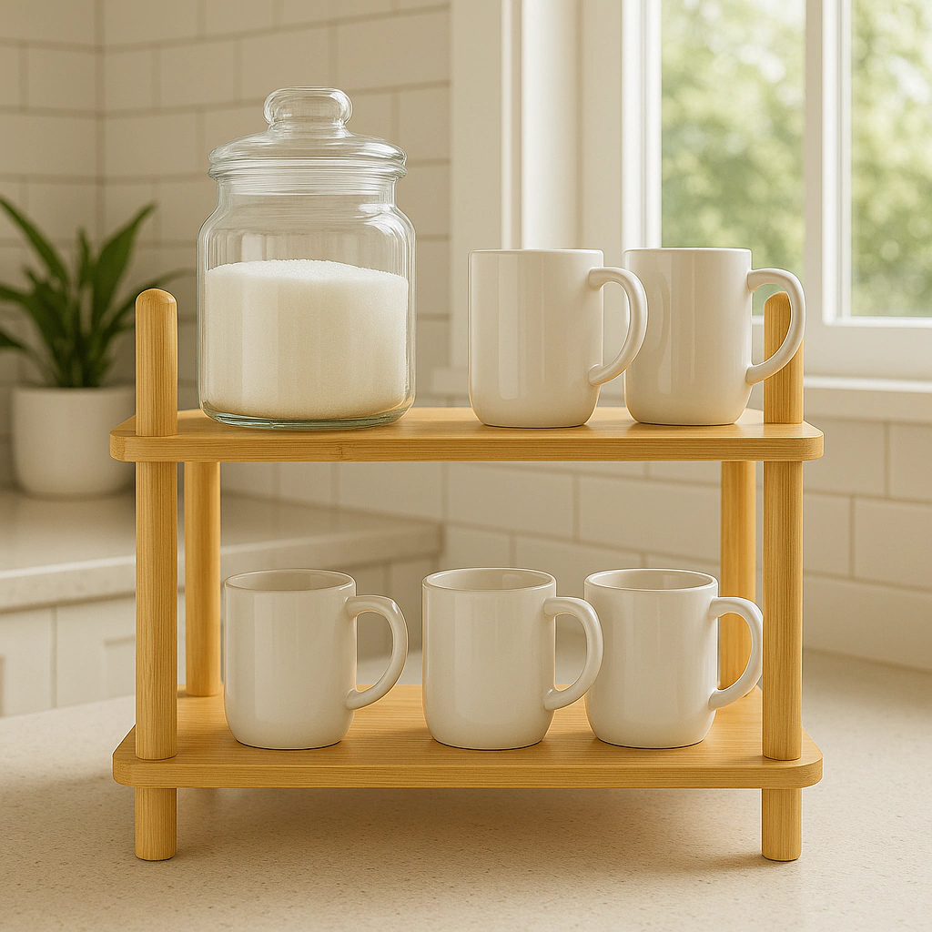 ESTANTE ORGANIZADOR DOBLE PISO DE BAMBU