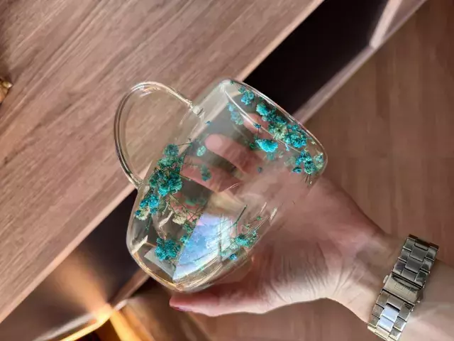 Fresca, luminosa y única. La taza Aruba destaca por sus flores secas en tonos turquesa 🌿 que flotan delicadamente en su interior, evocando el color del mar y la tranquilidad de un día soleado. Su diseño de doble pared conserva la temperatura y eleva cada momento con estilo ✨. Ideal para quienes buscan belleza en los pequeños detalles 💙.